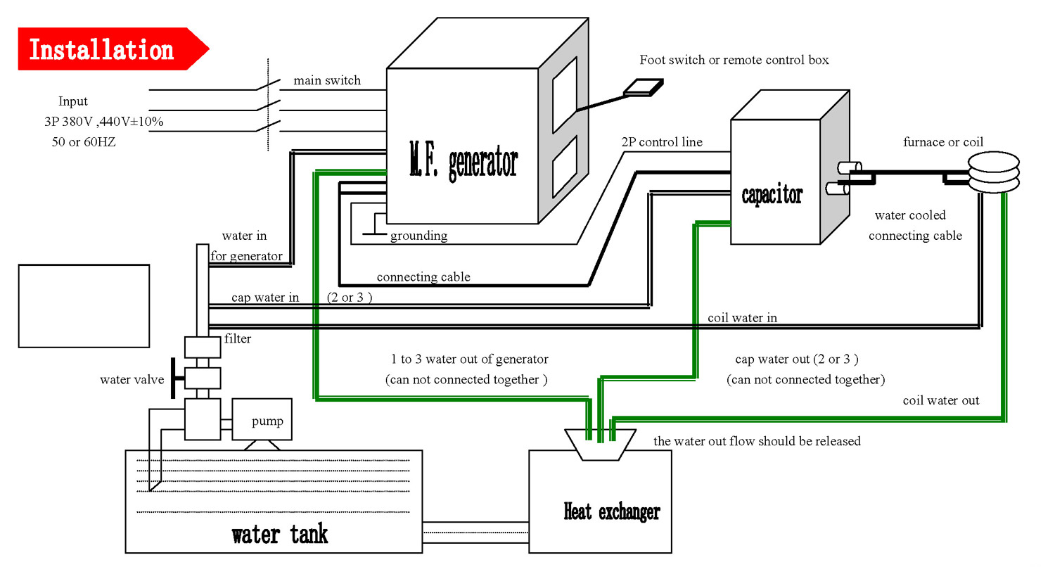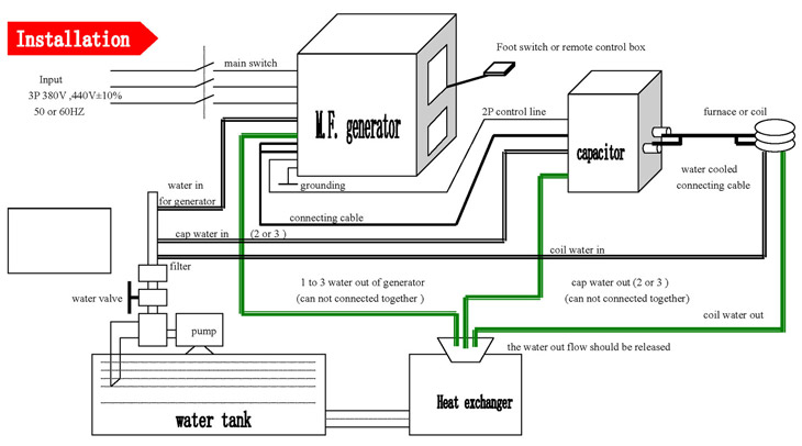 Water cooled cables (connect furnace body with capacitor cabinet)