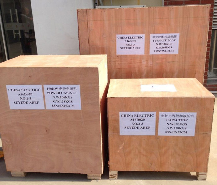 1 set 160 kw 200 kg capacity iron & stainless steel melting hydraulic tilting IGBT medium frequency induction furnace was shipped for Bandar Abbas, Iran on Aug. 15th, 2016.