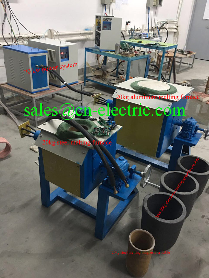 70 kw IGBT medium frequency power supply system with 1 pc 20 kg magnesia crucible steel melting induction furnace and 1 pc 20 kg graphite crucible aluminum melting induction furnace were shipped for Kuwait April 8th, 2016.