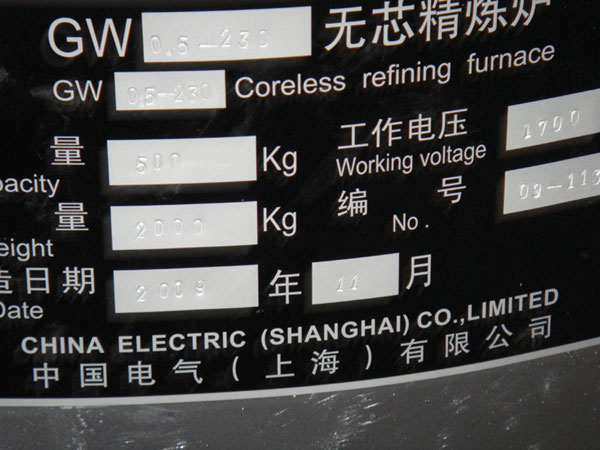 The power is 3phase, 440V, 60Hz and 230kw. The following pictures are about this furnace.