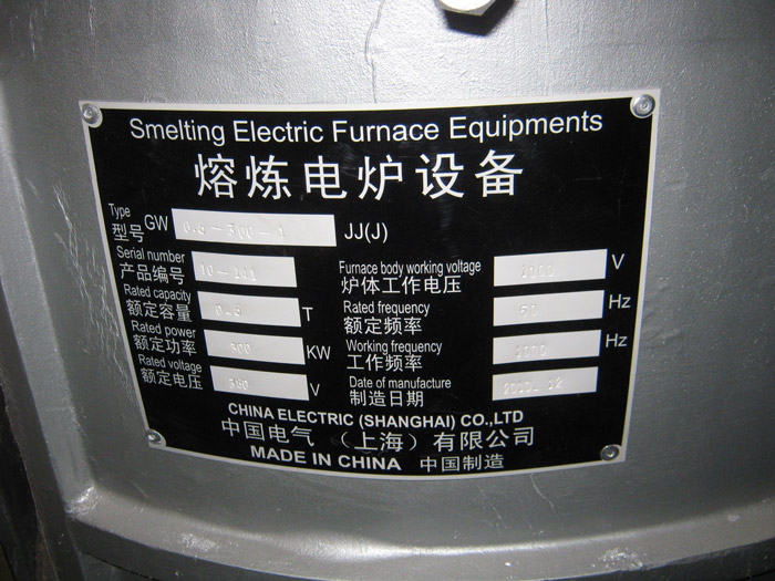 Nameplate on 500kg Induction Furnace Body