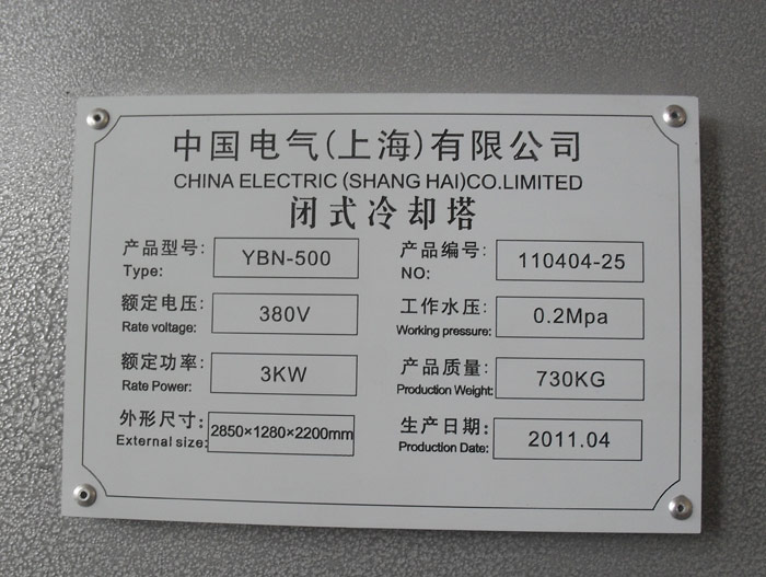 Nameplace of Close Water Cooling Tower