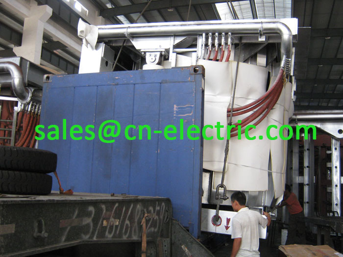 1 set of 20Ton capacity 10000Kw induction melting furnace with matched 2pcs of 6300kva rectifier transformers and water cooling towers were shipped for Bandar Abbas, Iran on Sep. 19, 2011.