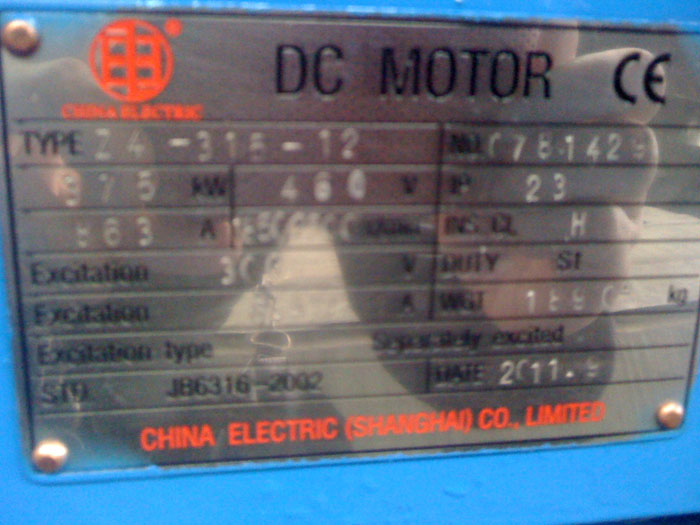 1PC 375KW DC MOTOR Model Z4-315-12 was shipped for Haiphong-Vietnam on Oct 1st, 2011 Some Information for this motor is as below: