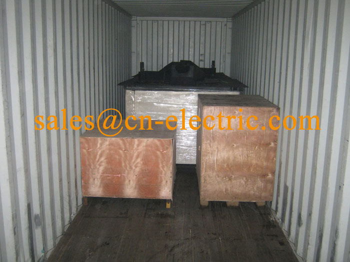 1set 0.5ton 250kw medium frequency induction melting furnace with matched 315Kva rectifier transformer and closed circle water cooling tower were loaded in 40HQ container on June 1st, 2013. They will depart on June 4th for Lagos/Tincan Nigeria.