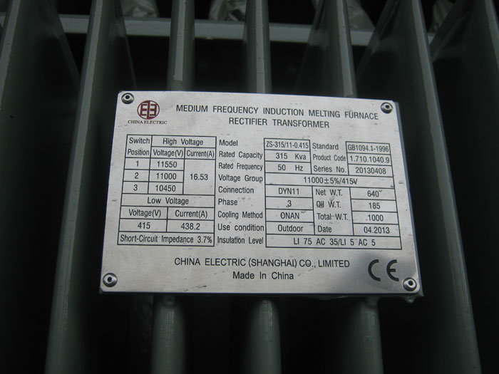 315Kva rectifier transformer model ZS-315/11-0.415