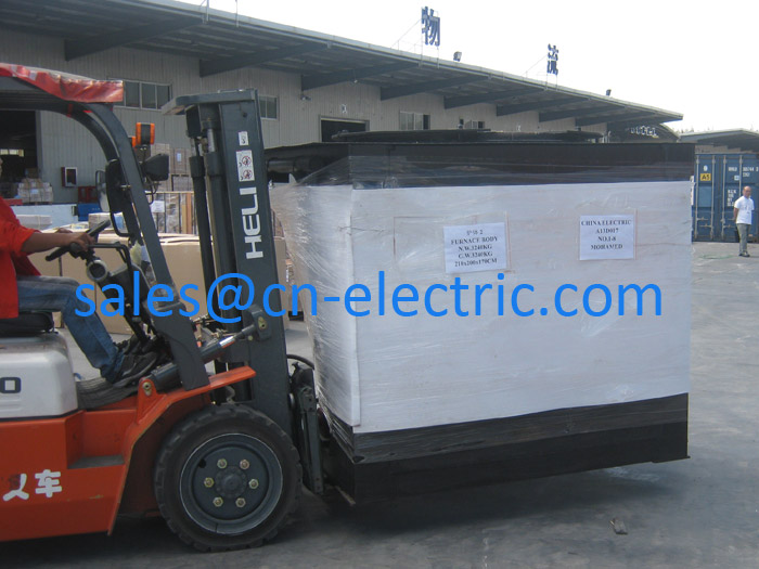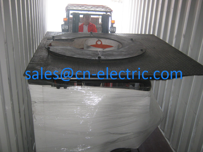 1 set 1 Ton 600 Kw medium frequency induction melting furnace with matched closed circle water cooling tower was shipped for Alexandria Egypt on Sep.24th,2013. Induction Melting Furnace Rated capacity: 1 Ton Rated Power: 600 Kw Working Frequency: 1000Hz Model: GWG-1-600/1J Type: Magnetic-yoke steel shell hydraulic tilting Power Supply: 3phase/380VAC/50Hz Closed Circle Water Cooling Tower Model: YBH-70T Water flow rate: 70Ton/Hr 1 Ton induction furnace in loading