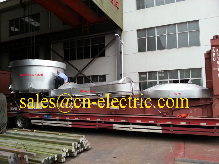 1set of 3Ton 2200Kva 6Kv Electric Arc Furnace HX-3T was shipped for NOVOROSSIYSK, Russia on Sep. 16th, 2014 3ton arc furnace body, tilting arc shape frame, water cooling cover on 40 flat rack container