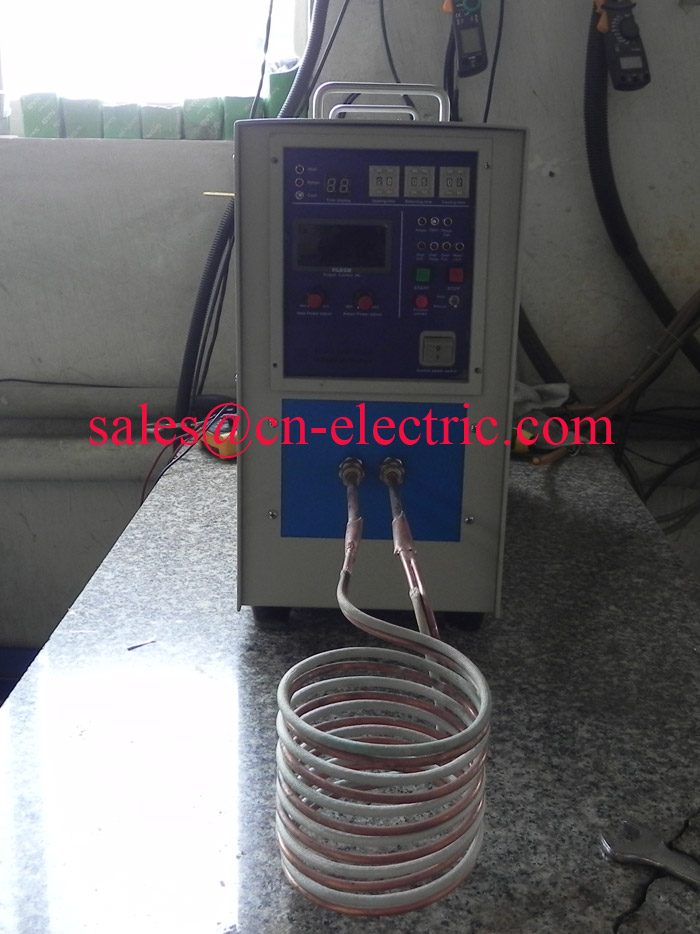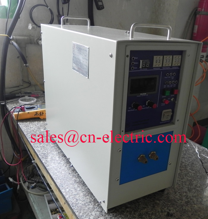 IGBT 25 Kw high frequency copper melting induction furnace was sent for Munich Germany by DHL on May 22nd, 2015 Power input: 360 V ± 20% 3 phase 50 Hz. Working frequency: 30~100 KHz. Application: melting copper, bronze, silver, etc. 25 Kw 30~100 KHz high frequency power system with induction coil