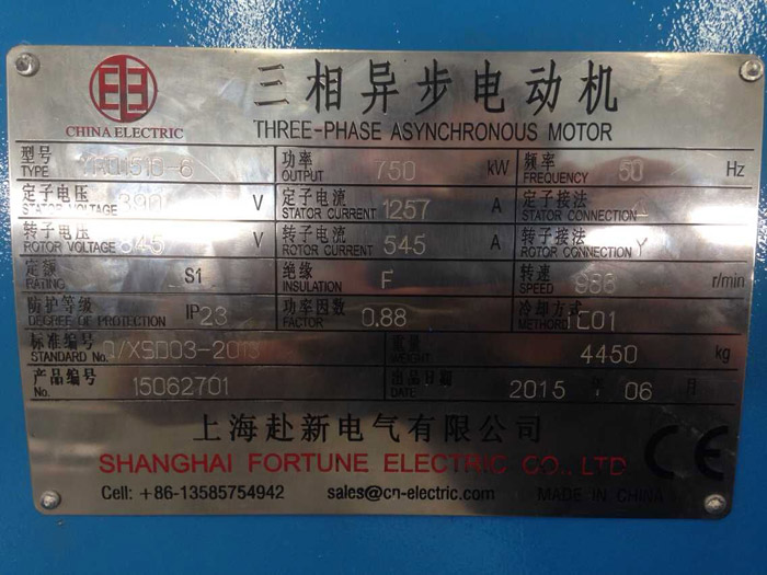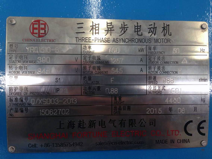2 pcs 750 Kw, stator 390 V/1257 A, 6 pole 988 r/min, JR1510-6 wound rotor slip ring motors for steel rolling mill were shipped for Karachi Pakistan Aug. 20th, 2015.