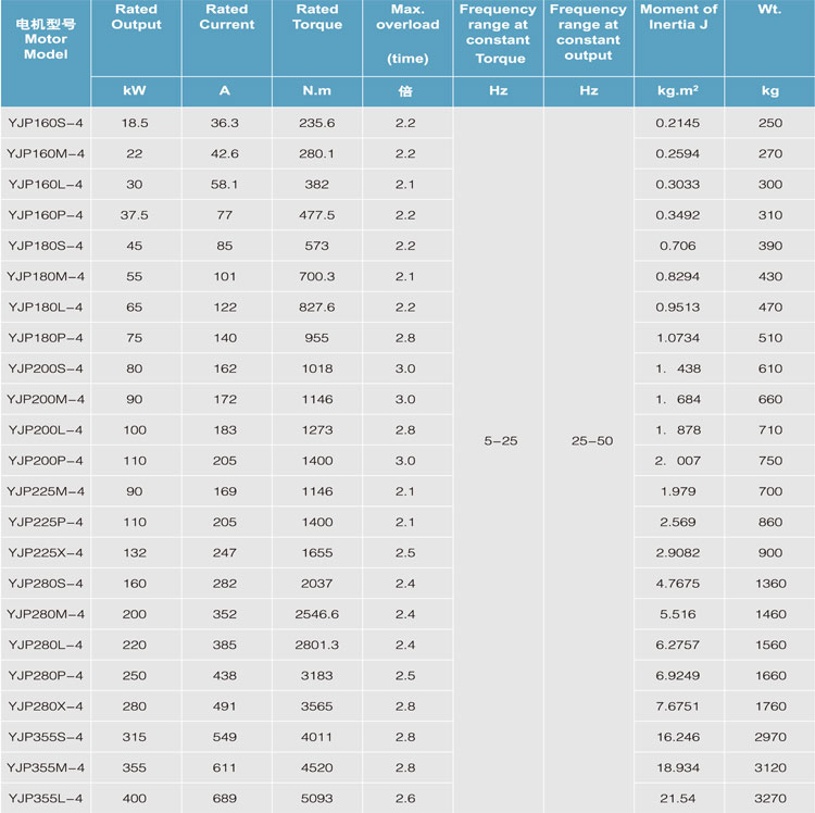 YJP Series Variable Frequency Variable Speed Inverter Motors are suitable to various industrial fields with a novel and compact structure, exquisite appearance, reasonable technical design and economical cost.