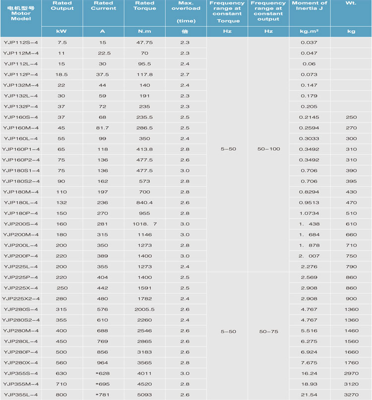 5.For the 4 pole and base frequency less than 25 Hz motors, the max speed at constant output power can be 4 times of the base speed or even higher.