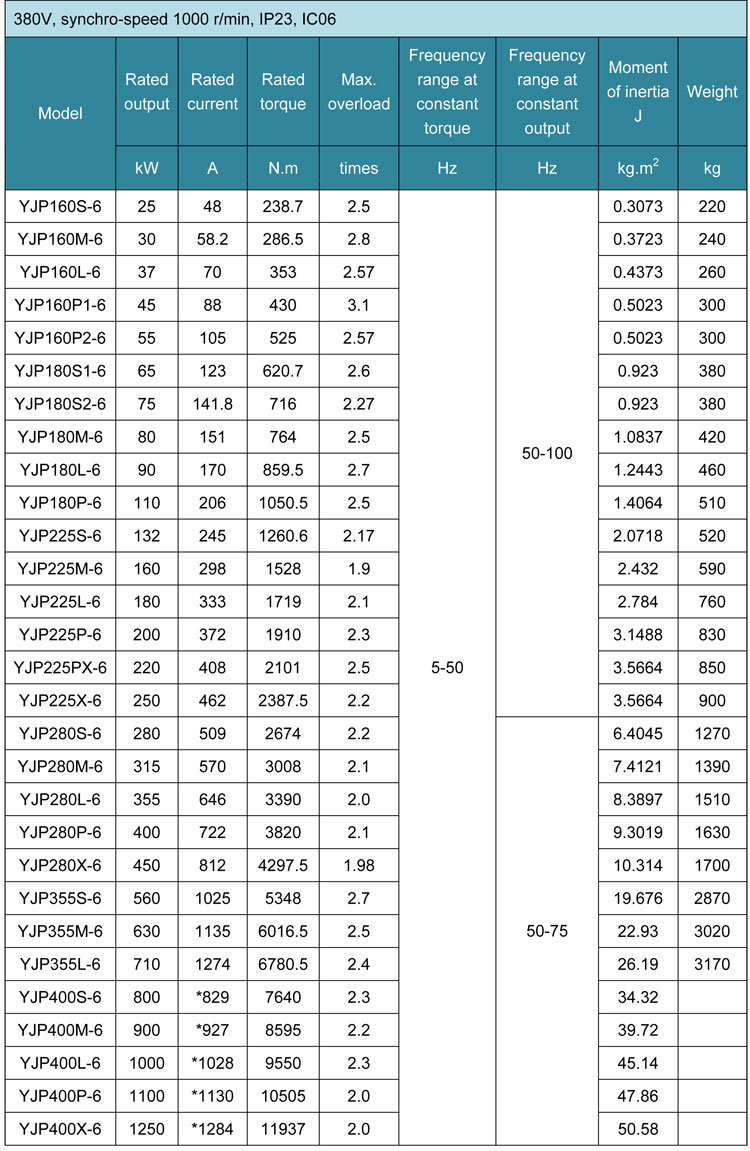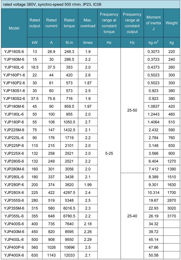 YJP----series number for IC06 IP23 low voltage inverter motor