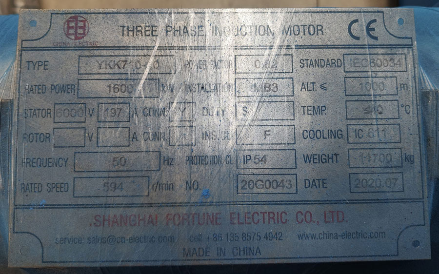 Type: YKK710-10 Power factor: 0.82 Rated power: 1600 kW