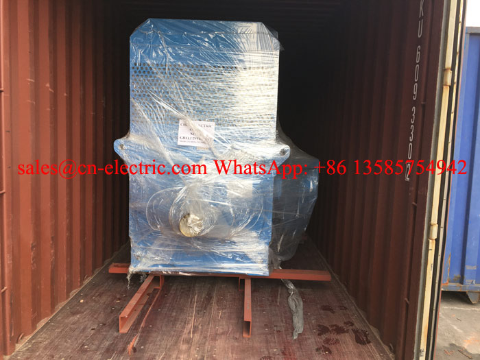 2 PCS YRKK560-10 450 Kw, stator 5500 V 50 Hz, IC616 TEAAC, IP54, YRKK series high voltage wound rotor slip ring motors with matched Liquid Resistor Starter and High Voltage Switch Gear Cabinet were shipped for Karachi, Pakistan on September 13th, 2017.