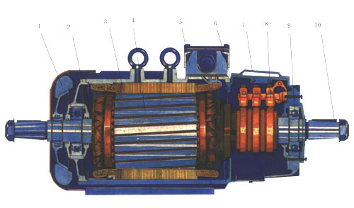 1. Fan 2. Front end cover 3. Stator 4. Rotor 5. Terminal Box