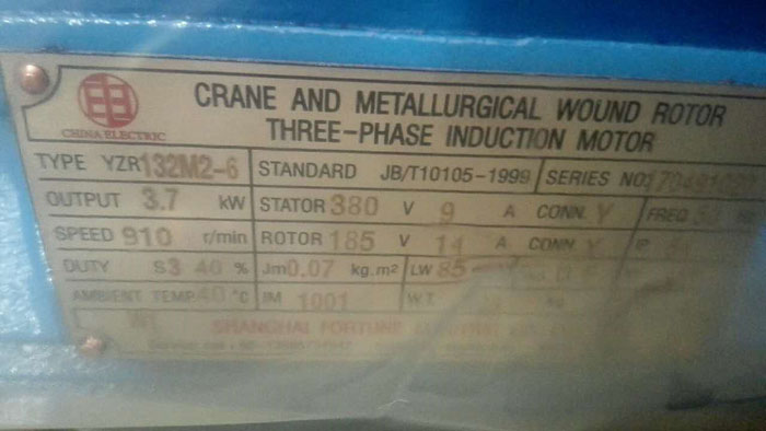 Nameplate for YZR132M2-6 3.7 kW 910 r/min Crane & Metallurgical Wound Rotor Slip Ring Motor