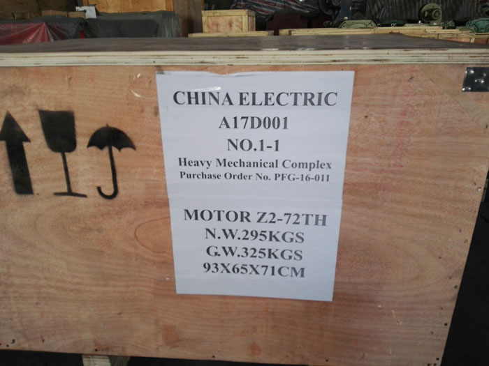 Z2-72TH 22 kW 220 V 1500 rpm IC01 IP23 Electric DC Motor was shipped for Karachi on Mar 13,2017