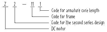 For power is more than 2kW, starting machine with multistage starting resistance or using reducing armature voltage is adopted to step-up starting.· Model explanation