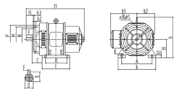 If each stator winding of motor frame is monolayer naked conductor, then it’s temperature rise is 10K higher than it’s insulation class. The motor can use elasticity coupling, spur gear or triangle strap and other transmission method which have no axial thrust. If the motor is biaxial extension, motor frame 1-6’s biaxial extension both can pass rated moment; but the motor frame 7~11’ s commutator shaft extension only can pass rated moment when without radial load. If it has radial load, it only can pass 50% of the rated torque.