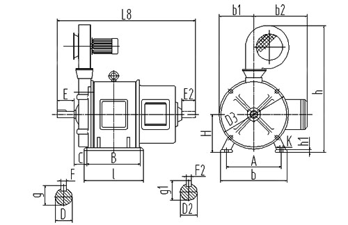 Z2 series motors, basic structure is self ventilations & drop-preventing, it can prevent drop、slag or other things from falling into the motor from uprightness 45°