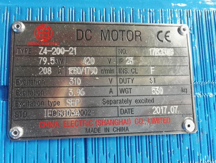 Model: Z4-200-21 Rated power: 79.5 KW Armature voltage: 420 VDC