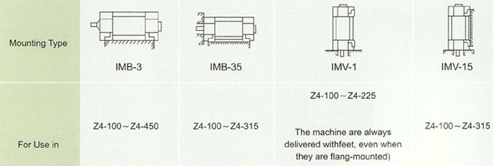 TypeRated OutputRated SpeedSpeed with Field WeakenedArm. Curr.Field PowerSmoothing InductanceMoment of InertiaWt.PN160V400V440VNFINPFLHGD2kWr/minr/minAWmHkg.m2kgZ4-100-12.21490300017.9315150.044721.5955200013.3154263040001242960400010.72131030006.62.2148030006.51.486020005.11.599020004.77Z4-112/2-131540300024320200.0721002.2975200019.6205.52630400016.45.52940400014.72.8134030009.13150030008.61.985520006.92.296520007.1Z4-112/2-241450300031.3350120.08810731070200024.81072660400020.47.52980400019.73.71320300011.741500300011.22.6895200093101020009.1Z4-112/4-15.51520300042.55006.50.1281064990200033.74.5102680350029112950350028.851340180015.75.51480180015.43.78551100134980110012.2Z4-112/4-25.51090200043.557060.156114132740360037153035360038.66.71330180020.67.51480180020.65955120016.15.51025120015.7TypeRated OutputRated SpeedSpeed with Field WeakenedArm. Curr.Field PowerMoment of InertiaWt.PN400V440VNFINPFGD2kWr/minr/minAWkg.m2kgZ4-132-118.52610400052.26500.3214018.52850400047.1101330210030.1111480220029.67865160022.77.5975160021.4Z4-132-2202800360055.473C0.4160223090360055.3151360250044.5151510250039.510905140031.111995140030.5Z4-132-3272720360074.58000.4818030300036007518.51390210053.218.51540220047.613.5945160040.5151050160040.5Z4-160-11332710350093.48200.6422037300019.51350300058.8221500Z4-160-2240.5271035001139200.76242453000Z4-160-2116.5900200050.518.51000Z4-160-3249.52710350013710500.88268553010Z4-160-31271350300077.830150019.5900200059.1221000TypeRated OutputRated SpeedSpeed with Field WeakenedArm. Curr.Field PowerMoment of InertiaWt.PN400V440VNFINPFGD2kWr/minr/minAWkg.m2kgZ4-180-11331350300095.412001.5232637150016.5670190051.418.575013540140042.415600Z4-180-22672710340018514001.72350753000Z4-180-2140.5135028001154515002790020007930100019.56701400612275016.554016005218.5600Z4-180-313390020009715001.9238037100019.554012506222600Z4-180-42812710320022117002.2410903000Z4-180-4150135030001395515002767020008030750Z4-200-12992710300027114003.684851103000Z4-200-1140.59002000118451000336701600993775019.545010006422500Z4-200-21671350300018815004.25307515002754010008230600Z4-200-321192710320032217504.85801323000Z4-200-31811350280022490150049.5900200014155100040.567014001194575033540120010137600274507504430500TypeRated OutputRated SpeedSpeed with Field WeakenedArm. Curr.Field PowerMoment of InertiaWt.PN400V440VNFINPFGD2kWr/minr/minAWkg.m2kgZ4-225-119913603000276230056801101500679002000193751000496801300146557504054012001234560033450100010337500Z4-225-2149540100014824705.67405560040450100012545500Z4-225-311191360240032725806.2800132150081900200022790100067680225019775750Z4-250-121441360210039925008.88901601500Z4-250-119990020002811101000Z4-250-2116713602200459275010970185150081680225023490750Z4-250-3118013602400493285011.210702001500119900200033413210006754020002047560049450150015255500Z4-250-4119813602400539300012.811802201500Z4-250-4214490020004011601000Z4-250-419968019002831107508154016002369060067450150020175500TypeRated OutputRated SpeedSpeed with Field WeakenedArm. Curr.Field PowerMoment of InertiaWt.PN400V440VNFINPFGD2kWr/minr/minAWkg.m2kgZ4-280-1122613552000614310016.412802501500Z4-280-2225313551800684350018.414002801500Z4-280-21180900200049820010001196751600333132750995401500281110600Z4-280-3228413601800768360021.215503151500Z4-280-3119890020005452201000Z4-280-321446751700402160750Z4-280-31118540100033913260080450140023490500Z4-280-42225900180061640002417002501000Z4-280-411666751900464185750984501000282110500Z4-315-1232113601800865385021.218903551500253900160069028010001806801900500200750Z4-315-1114454019004091606001184501600344132500983601200294110400Z4-315-222849001600772435024208031510002256801600624250750Z4-315-2116654016004681856001434501500413160500Z4-315-323209001600867465027.22290355100025268016006982807501805401500501200600Z4-315-311183601200344132400Z4-315-423619001400971520030.82520400100028468016007783157502255401600626250600Z4-315-4116645015004681855001433601200416160400TypeRated OutputRated SpeedSpeed with Field WeakenedArm. Curr.Field PowerMoment of InertiaWt.PN400V440VNFINPFGD2kWr/minr/minAWkg.m2kgZ4-355-1240690015001094470042289045010003216801500877355750Z4-355-11253540150069728060018045015005062005001663601200478185400Z4-355-223616801600978560046317040075028465015007833156002254501600624250500Z4-355-211803601200511200400Z4-355-3240668011001098600052349045075022054016008773556002844501500789315500Z4-355-311973601200559220400Z4-355-423615401300985650060384040060032045012008823555002253601200627250400Z4-400-22435680140011755700744500480750Z4-400-212353601200675260400180270900537200300Z4-400-32500680140013406400844900550750400540130010834406003444501300852380500Z4-400-312703601200768300400208270900611230300Z4-400-4243554013001175710094530048060039045014001070430500Z4-400-413163601200880350400235270900676260300TypeRated OutputRated SpeedSpeed with Field WeakenedArm. Curr.Field PowerMoment of InertiaWt.PN400V440VNFINPFGD2kWr/minr/minAWkg.m2kgZ4-450-2247254012001286650013856005206004084501400111445050036236012001010400400Z4-450-21253270900720280300Z4-450-3250054012001358710015660005506004534501300122850050040836012001130450400309270900875450300Z4-450-31200180600595220200Z4-450-4254554011001492780017467006006005004501100136755050045336012001254500400345270900972380300Z4-450-41235180600698260200Horizontal shaft, foot mounted