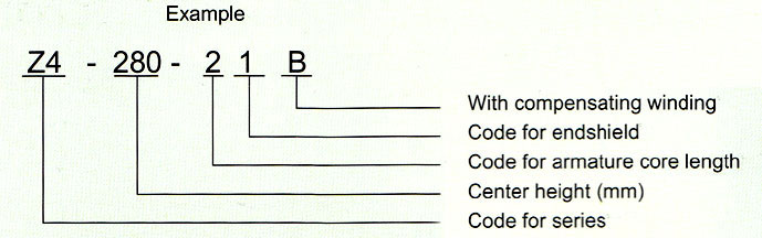 5. For frame size Z4-315, Z4-355, Z4-400 and Z4-450, compensating windings are provided. For frame size Z4-250 and Z4-280 the motors are feasible with a compensating winding too.